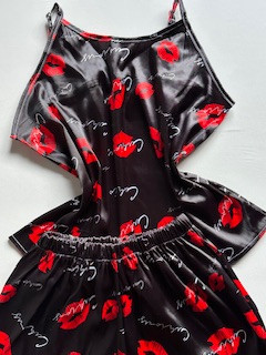 ست ساتن گیپور طرح لب مشکی