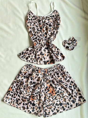 ست ساتن طرح پلنگی صورتی