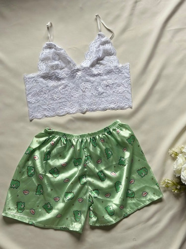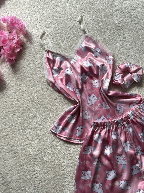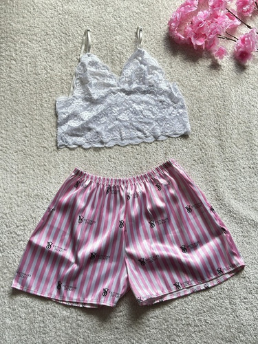 ست تاپ شلوار ساتن طرح ویکتوریا