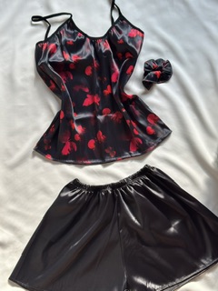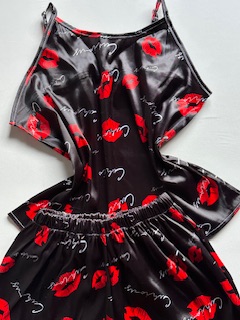 ست ساتن گیپور طرح لب مشکی