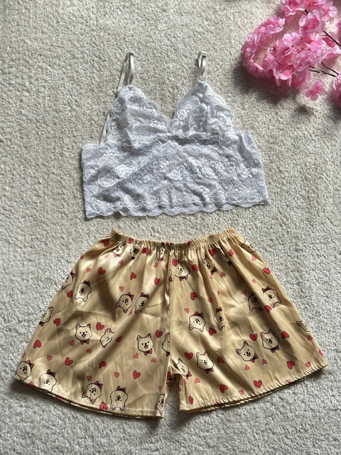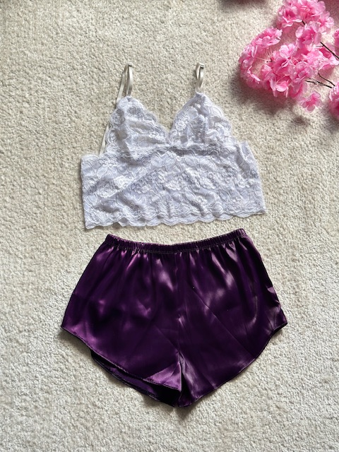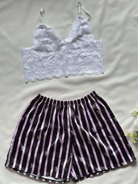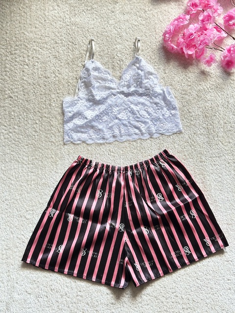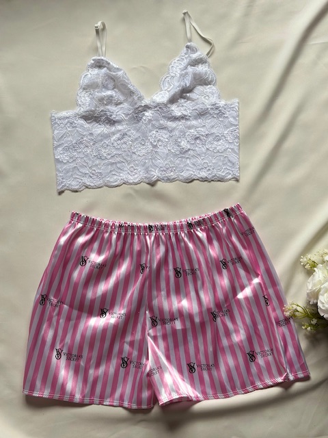 ست تاپ شلوار ساتن طرح ویکتوریا