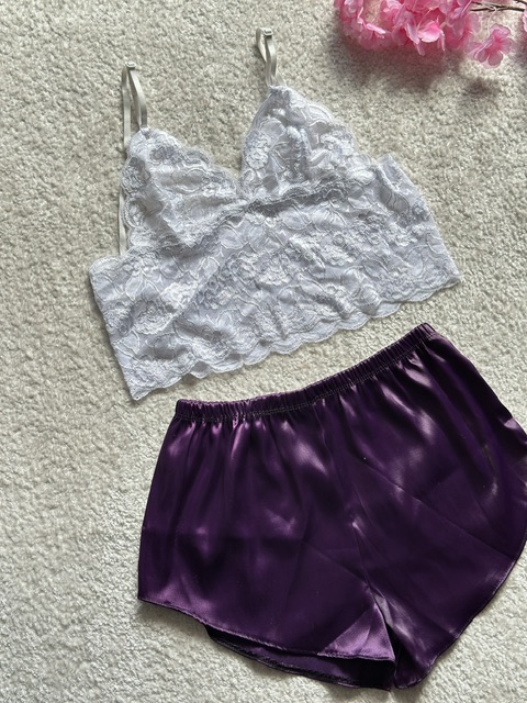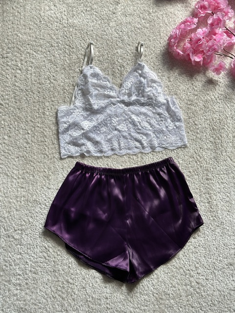 ست ساتن گیپور بنفش